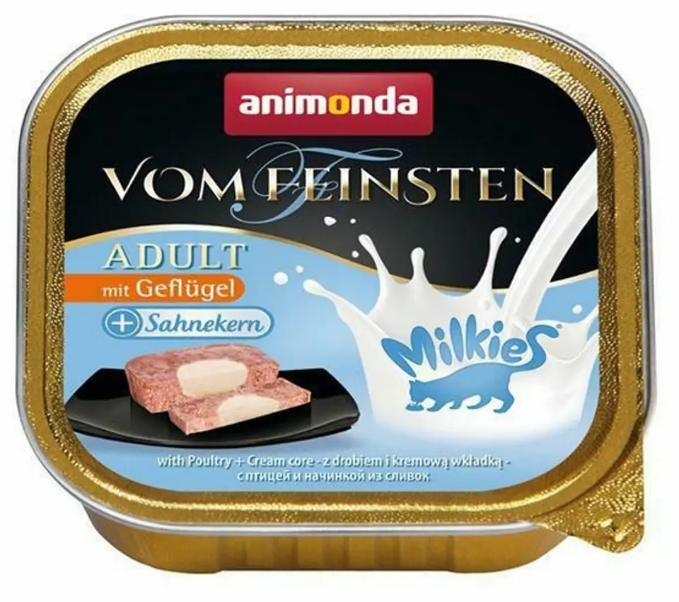 Karma dla kota Animonda vom Feinsten Milkies to kompletny posiłek dla kotów, niezawierający soi, barwników i konserwantów.