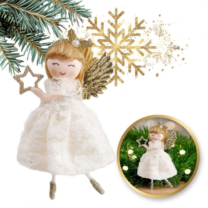 ANIOŁ ŚWIĄTECZNY Z GWIAZDKĄ BOŻE NARODZENIE Z PLUSZU 13cm ASN11