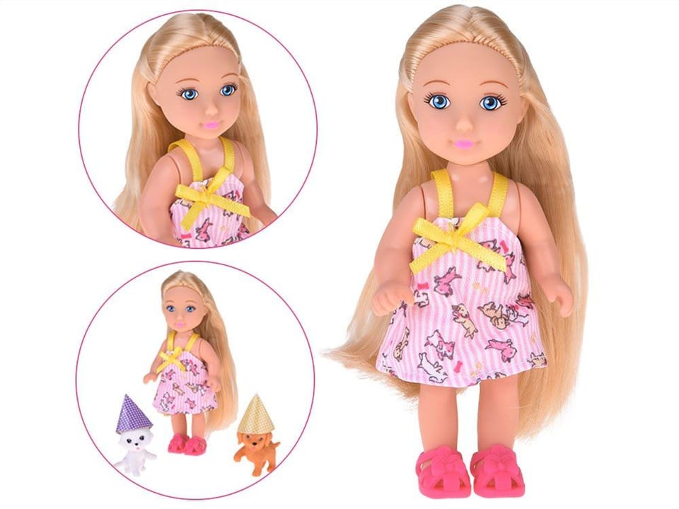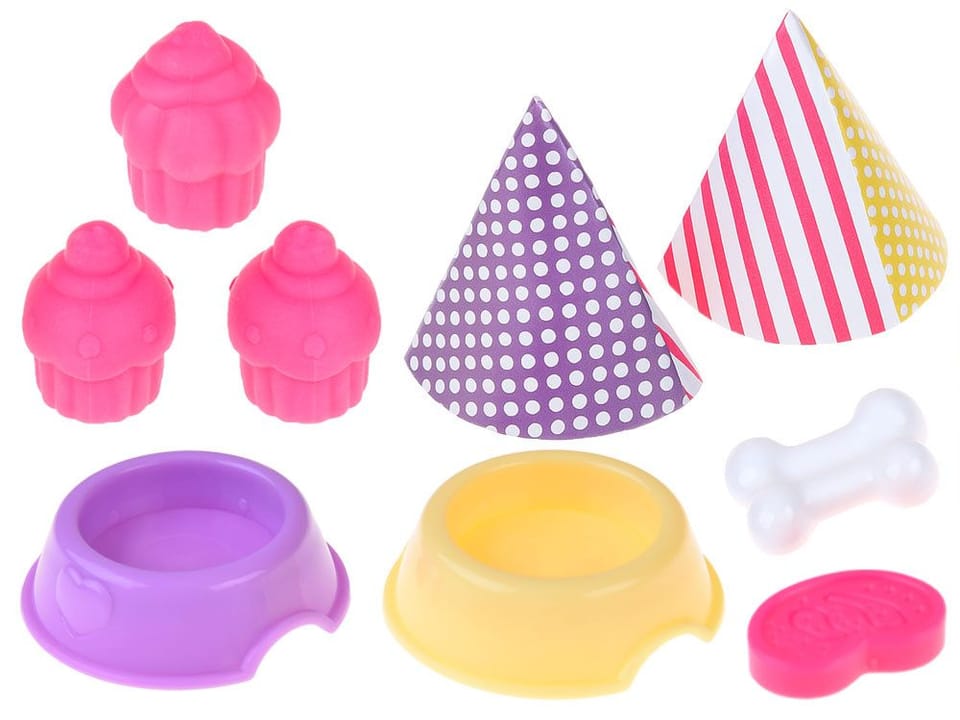 To prawdziwa uczta dla wyobraźni i świetny pomysł na radosną zabawę dla każdej dziewczynki. W pudełku czeka urocza laleczka w letniej sukience i różowych bucikach, gotowa, by zorganizować przyjęcie dla swoich ukochanych pupili! Towarzyszą jej dwa słodkie zwierzątka - biały kotek i brązowy piesek, które tylko czekają na wspólną zabawę i smakołyki.