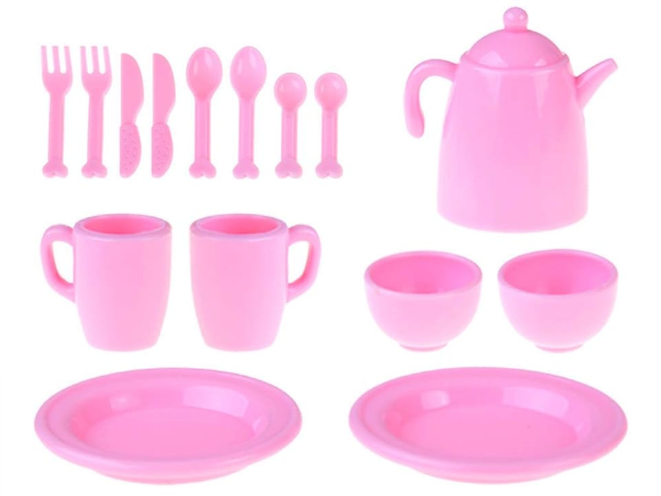 Jest tu stoliczek z kolorowymi miskami, przy którym zwierzaki mogą wygodnie usiąść, a także maleńkie krzesełka, które dodają uroku każdej scence. Nie zabrakło również serwisu do herbaty - czajniczka, filiżanek i talerzyków, które sprawiają, że każda impreza nabiera wyjątkowego klimatu.