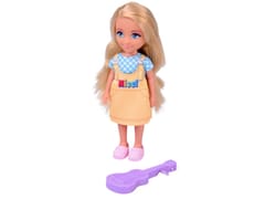 W zestawie jest fioletowa gitara z uchwytem (nie wydaje dźwięków), dzięki któremu lalka może trzymać instrument.