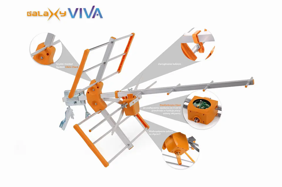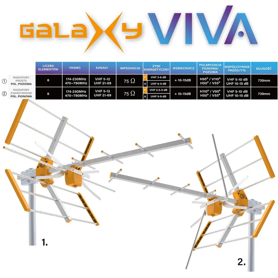 Antena Galaxy COMBO to antena do odbioru telewizji DVB-T i DVB-T2. Jest to antena pracująca w dwóch pasmach częstotliwości: VHF 174-230 MHz i UHF 470-790 MHz.