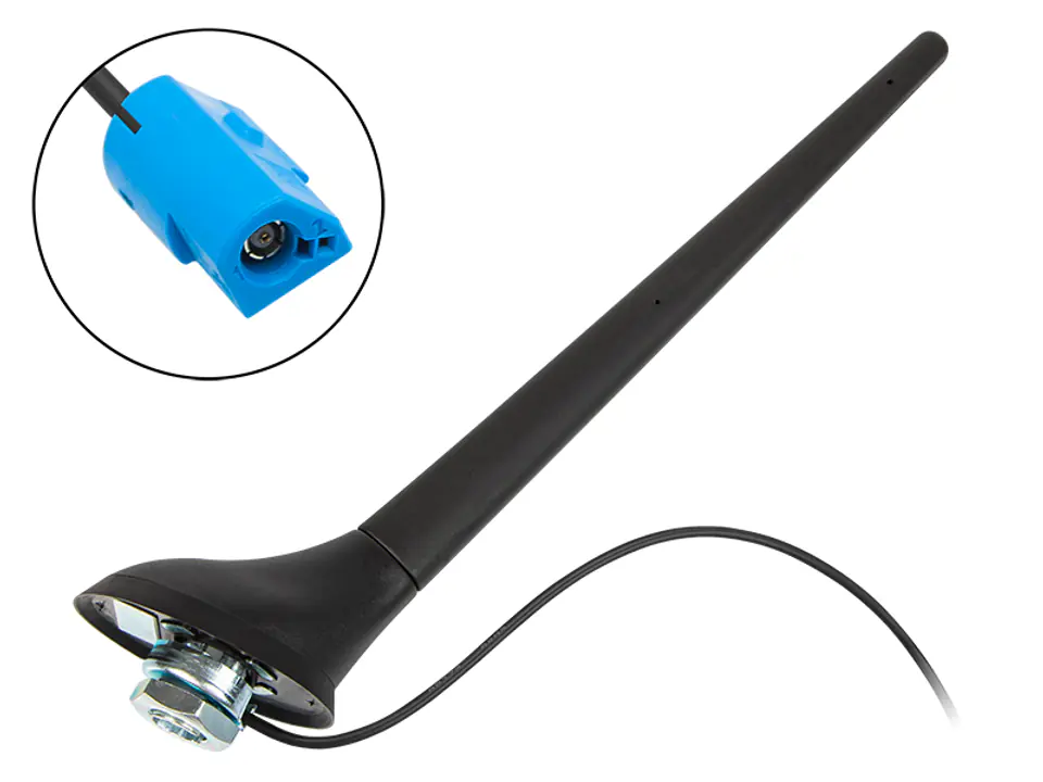 Profesjonalna Antena dachowa FM/AM do Opel ze wzmacniaczem o dużym wzmocnieniu z oryginalnym masztem Antena to odpowiednik oryginalnej anteny używanej na pierwszy montaż. Spełnia funkcje odbioru fal radiowych AM/FM. Antena posiada wbudowany wysokiej jakości wzmacniacz SMD , który znajduje się w stopce anteny. Wzmacniacz antenowy wewnątrz anteny posiada zasilanie Phantom co oznacza, że jest zasilany poprzez wewnętrzną żyłę (kabel antenowy). Antena współpracuje z dowolnym radioodbiornikiem fabrycznym lub niefabrycznym z instalacją ze złączem FAKRA FEMALE. W przypadku radioodbiornika niefabrycznego konieczne jest użycie tzw. separatora antenowego, który podaje zasilanie na wewnętrzną żyłę kabla antenowego. Antena nie współpracuje z zewnętrznym wzmacniaczem antenowym.