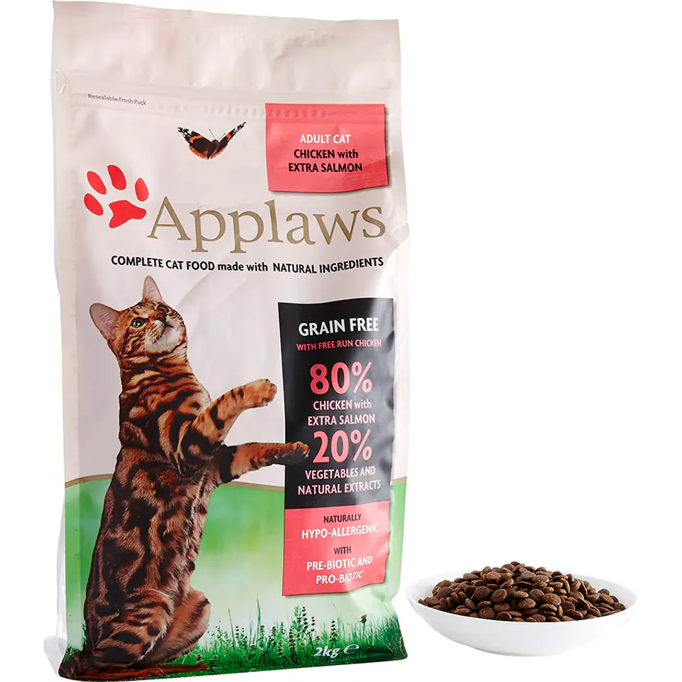 Zalecana porcja dzienna jest podana w przybliżeniu, ponieważ wymagania zależą od wieku, wielkości i poziomu aktywności, a także od tego, czy podawany jest również mokry pokarm. Dodawaj po kilka krokiecików dziennie, stopniowo zastępując starą dietę pokarmem Applaws przez co najmniej 10 dni. Każdy smakowity krokiecik może ważyć trochę więcej niż typowy, dlatego należy zachować umiar, aby nie przekarmić kota. Jeśli kot dostaje również mokry pokarm, to trzeba zmniejszyć porcje suchej karmy, aby zapobiec tyciu. Pamiętaj o zapewnieniu ciągłego dostępu do świeżej wody.