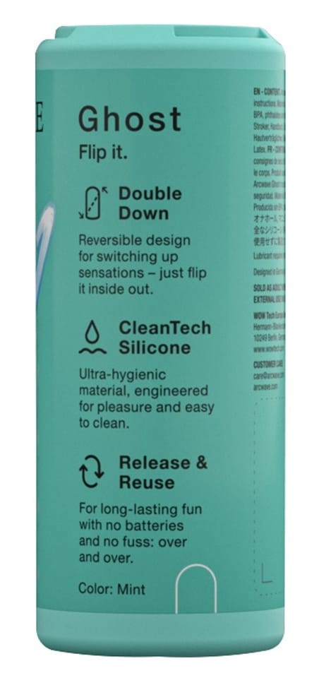 Arcwave Ghost to zaawansowana maszyna intymna zaprojektowana z myślą o nowoczesnych użytkownikach, ktorzy cenią sobie funkcjonalność, higienę oraz kompaktowy rozmiar. Produkt wykonano z wysokiej jakości, jedwabistego silikonu CleanTech, ktory zapewnia wyjątkową miękkość oraz łatwość utrzymania w czystości. Dwustronna powierzchnia pozwala wybrać pomiędzy delikatną strukturą z wypustkami a wyraźnymi rowkami – wystarczy odwrocić bardzo elastyczny rękaw, by dostosować działanie do własnych preferencji.