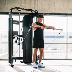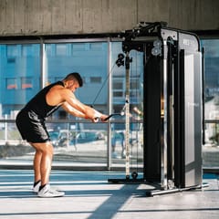 ARES PRO BRAMA DO ĆWICZEŃ Z WYCIĄGIEM I STOSEM COMMERCIAL HMS ARES PRO to zaawansowana brama do ćwiczeń stworzona z myślą o sportowcach, trenerach personalnych oraz wymagających użytkownikach, którzy oczekują niezawodności, płynnej pracy i wszechstronności. To nowoczesna maszyna wielofunkcyjna idealna zarówno do siłowni komercyjnych, jak i studiów treningu personalnego. Wszechstronność treningowa na najwyższym poziomie Urządzenie umożliwia wykonanie dziesiątek ćwiczeń – od klasycznych ruchów siłowych po trening funkcjonalny i stabilizacyjny. Płynna regulacja wysokości bloczków (system 180°) oraz czytelna numeracja na stalowych prowadnicach pozwalają na szybkie dopasowanie ustawień do wzrostu i rodzaju ćwiczenia. Dzięki temu sprzęt świetnie sprawdzi się w treningu całego ciała: pleców, klatki piersiowej, barków, ramion, nóg oraz mięśni głębokich. Precyzja wykonania i nowoczesny design Konstrukcja ARES'a PRO została zaprojektowana z dbałością o każdy detal. Metalowe osłony, aluminium klasy premium oraz szczotkowana stal nierdzewna nie tylko chronią mechanizmy, ale także podkreślają profesjonalny charakter urządzenia. Wbudowane rolki prowadzące zapewniają płynny ślizg przy regulacji wysokości, a gumowane uchwyty gwarantują ergonomiczny i pewny chwyt. Zaawansowane systemy wyciągów Bramę treningową wyposażono w dwa niezależne stosy obciążeń, każdy o wadze 90 kg. Magnetyczne piny pozwalają na szybkie i precyzyjne dopasowanie obciążenia, a wysokiej jakości linki oraz aluminiowe bloczki zapewniają płynność pracy nawet podczas dynamicznych treningów. Kluczowe cechy systemu wyciągów: 35 poziomów regulacji wysokości, magnetyczne piny, aluminiowe bloczki long-life, obroty uchwytów o 180° Rozbudowany zestaw akcesoriów w standardzie Functional trainer ARES PRO dostarczany jest z kompletnym pakietem akcesoriów, dzięki którym zrealizujesz każdy plan treningowy: para uchwytów typu D-handle, sznur do tricepsa, opaska na kostkę i nadgarstek, długi drążek prosty długi drążek łamany uchwyty do przechowywania akcesoriów, zintegrowana półka na tablet i telefon (np. do treningów online lub aplikacji fitness). wszystkie dodatki mają dedykowane miejsce w konstrukcji, co ułatwia organizację przestrzeni treningowej. Wielopoziomowa stacja do podciągania Zintegrowany drążek multi-grip oferuje liczne możliwości chwytu: wąski, szeroki, neutralny, podchwyt/ nachwyt, chwyt równoległy, chwyt mieszany i podciąganie jednorącz. Dzięki temu ARES PRO zastępuje komplet akcesoriów i stacji, oszczędzając miejsce w klubie lub domowej siłowni. Bezpieczeństwo i komfort użytkowania Konstrukcja została wzbogacona o systemy: ochrona przed przytrzaśnięciem palców (zabudowany tor linki), amortyzacja uderzeń stosu, antypoślizgowe elementy chronią podłogę, wysoka stabilność dzięki szerokiej bazie. ARES PRO – idealny wybór dla profesjonalistów To nie tylko maszyna do ćwiczeń – to kompletna platforma treningowa, która łączy ergonomię, nowoczesny design i ponadprzeciętną trwałość. ARES PRO sprawdzi się w siłowniach komercyjnych, studiach treningu personalnego oraz zaawansowanych domowych siłowniach. Specyfikacja: Długość: 110 cm Szerokość: 141 cm Wysokość: 215 cm Odległość między profilami: 113 cm Rozmiar profilu: 50 x 50 x 2 mm Stos: 2 x 90 kg (regulacja co 4,5 kg) Regulacja wysokości wyciągu: 35-stopniowa (co 9 cm) Uchwyt na tablet i telefon Średnica drążka do podciągania: 3,1 cm Współczynnik przenoszenia siły (cable ratio): 1:2 Maksymalna waga użytkownika: 160 kg Waga: 311,7 kg Uwagi: Gwarancja 24 miesiące w przypadku użytku domowego Gwarancja 12 miesięcy w przypadku użytku komercyjnego Importer: Abisal Sp. z o.o.| Polska | 41-807 Zabrze | ul. Pyskowicka 17 | e-mail: abisal@abisal.plAbisal Sp. z o.o. deklaruje, iż produkty sprzedawane przez firmę są bezpieczne i spełniają wymagania zawarte w Ustawie o ogólnym bezpieczeństwie produktów z dnia 12 grudnia 2003r. (Dz.U. z dnia 31 grudnia 2003r.)