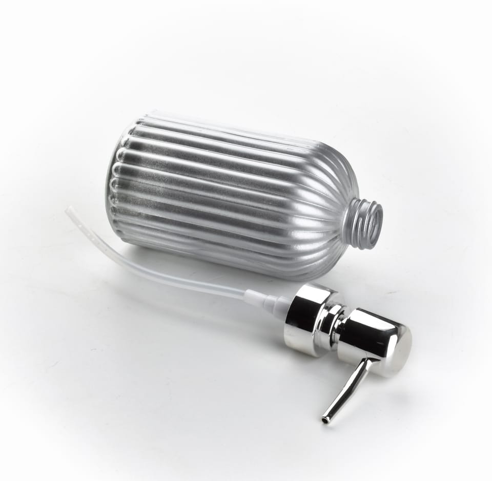 Szklany dozownik z serii ARI marki BATHLAB by MONDEX. Posiada srebrną pompkę która ułatwia wydobycie się mydła na zewnątrz. Dozownik na mydło w płynie ARI SILVER cechuje się dokładnym wykonaniem. Idealny srebrny matowy pojemnik w pionowe tłoczone paski. Wybór dla osób szukających użytecznych produktów stanowiących jednocześnie elementy dekoracyjne łazienek. dozownik z pompką wysokość 19cmszerokość 7.8cmdługość 7.8cmpojemność 400mlwhite box 8x8xh19.5cm
