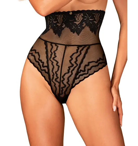 Majtki Arienna to niezwykle kobieca i zmysłowa propozycja. Fason z wysokim stanem doskonale eksponuje kobiece kształty oraz pięknie podkreśla talię. Seksowne wycięcie nad pośladkami zachęca do gorących przyjemności w sypialni, a wyjątkowo elegancka koronka dodaje szyku i otula ciało seksapilem. Majtki tworzą kuszącą parę wraz z biustonoszem z tej samej kolekcji.
