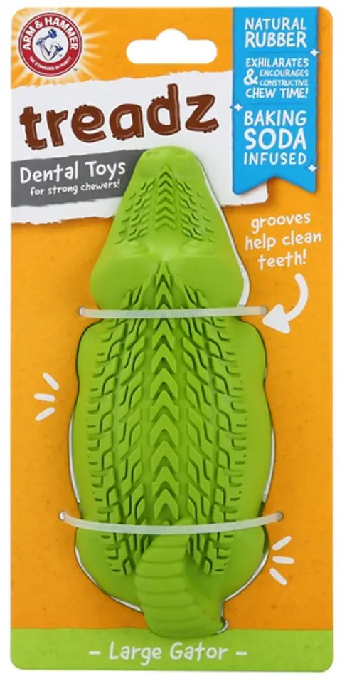 Super Treadz to linia uznanych na świecie zabawek dentystycznych dla psów! Zabawki wykonane są wyjątkowo wytrzymałej gumy naturalnej. Zawierają sodę oczyszczoną dzięki czemu zwalczają nieświeży oddech, zmniejszają gromadzenie się płytki nazębnej i kamienia bez szczotkowania!