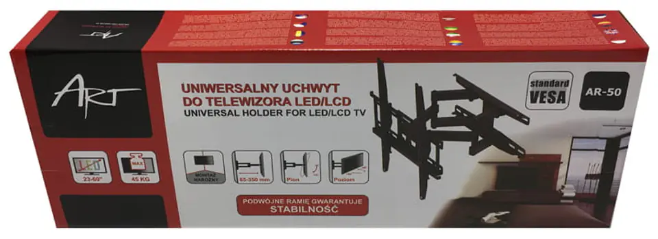 Powiesimy na nim każdy telewizor o rozmiarach od 23 do 63 cali z otworami w typowym standardzie VESA. Uniwersalne rozstawy otworów: