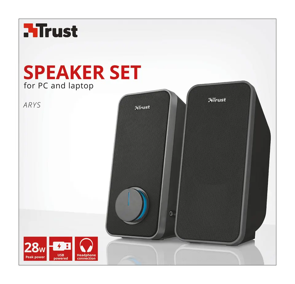 | Opis: | Trust 20179 loudspeaker Black Wired 14 W 20179, 2.0 channels, Wired, 14 W, Black |