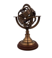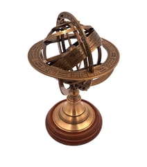 Astrolabium mosiężne – Wysokość 21cm - AMG140 Szukasz oryginalnego prezentu? Nasze astrolabium to doskonały wybór dla miłośników astronomii, nauki i pięknych przedmiotów. Zaskocz bliską osobę tym niebanalnym upominkiem. Informacje o produkcie Materiał: mosiądz, drewno Kolor: złoty Wymiary: Wysokość 21 cm, Średnica 14 cm Podstawa: drewniana