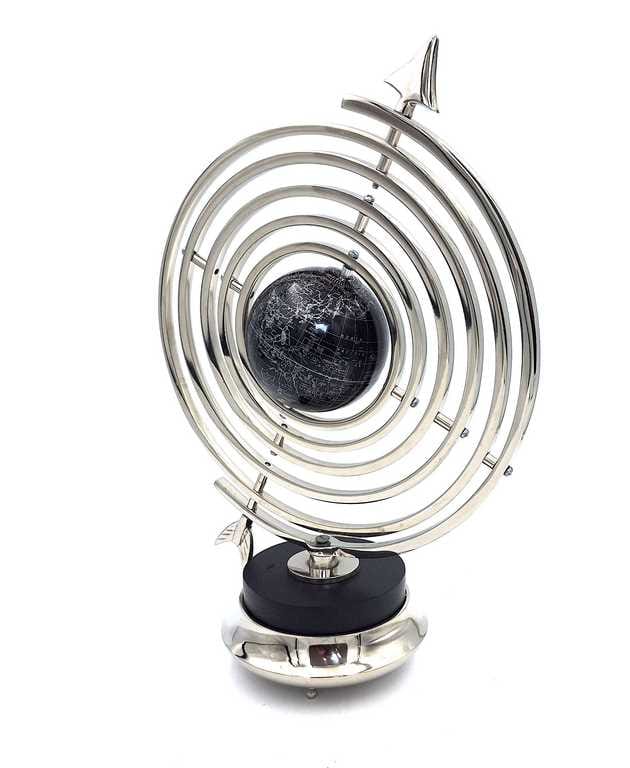 Astrolabium Sferyczne z Globusem 44,5 cm – Dekoracja Retro – Prezent dla geografa Astrolabium Sferyczne z Globusem – ponadczasowa elegancja i pasja odkrywania Wprowadź do swojego wnętrza klimat dawnych wypraw i astronomicznych tajemnic. Astrolabium sferyczne z globusem NI9117 to nie tylko zachwycająca dekoracja w stylu retro, ale też symbol wiedzy, odkrywania i elegancji. Wykonane z błyszczącego aluminium, przyciąga wzrok swoim eleganckim wykończeniem – idealnie komponuje się z nowoczesnymi, loftowymi, jak i gabinetowymi wnętrzami. ________________________________________ Dlaczego warto? Design premium – sferyczna forma z orbitami i stylizowaną strzałą Symboliczna dekoracja – nawiązanie do nauki, historii, astronomii Trwałe i eleganckie wykonanie – aluminium wysokiej jakości Wyjątkowy prezent – dla pasjonata nauki, nauczyciela, podróżnika, kolekcjonera Duży rozmiar – przyciąga wzrok i podkreśla charakter wnętrza ________________________________________ Dane techniczne: • Wysokość: 44,5 cm • Materiał: polerowane aluminium • Kolor: srebrny z czarnym globusem • Styl: retro / industrial / nowoczesny • Zastosowanie: biurko, regał, konsola, kominek, gabinet, biblioteka ________________________________________ Astrolabium NI9117 to idealny: • Prezent dla miłośnika astronomii lub historii • Wyjątkowy dodatek do biura lub domowej biblioteki • Stylowy element wystroju w podróżniczym stylu