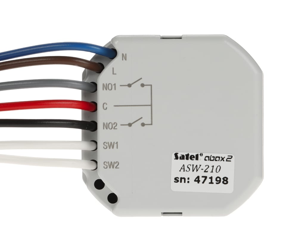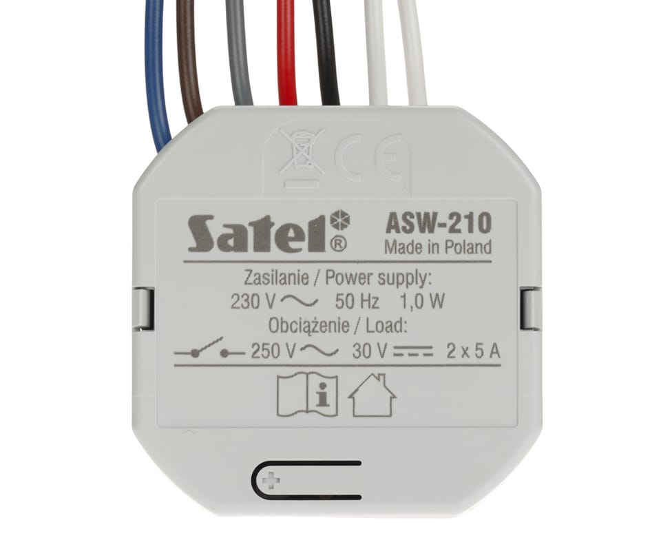 Moduł ASW-210 przeznaczony do zdalnego włączania i wyłączania urządzeń zasilanych z sieci 230 V AC. Działa w ramach dwukierunkowego systemu bezprzewodowego ABAX 2/ABAX.