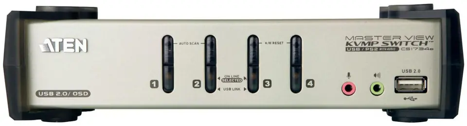 Aten 4 port USB KVM (Five In One) 4-Port USB - PS/2 VGA KVM Switch with Audio & USB 2.0 Hub (KVM Cables included), 2048 x 1536 pixels,