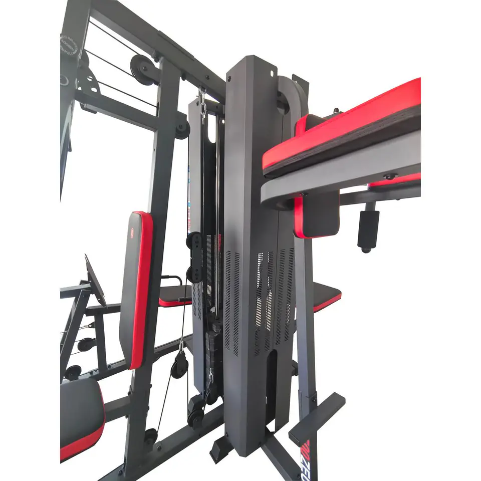 - przyrząd do wypychania nogami (prasa do nóg)stacja do pompek w zwisie i podciągania nógstacja motylkowa/rozpiętkistacja do wyciskania barkówwyciąg górnywyciąg dolnystanowisko z obrotową platformą (ćwiczenia talii)stanowisko do podciągania nóg (długi wyciąg linowy)wioślarz