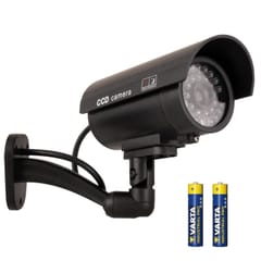 Cechy- Realistyczny wygląd przypominający profesjonalną kamerę przemysłową CCTV- Skutecznie odstrasza potencjalnych włamywaczy i wandali- Widoczna, migająca dioda LED zwiększająca wiarygodność- Obudowa wykonana z wysokiej jakości materiałów- Odporna na deszcz, wiatr i zmienne warunki atmosferyczne- Idealna do stosowania w domach, firmach, magazynach, garażach, ogrodach i na parkingach- Gratis naklejka: UWAGA - obiekt monitorowany- Zasilanie bateryjne - w zestawie baterie Varta Industrial