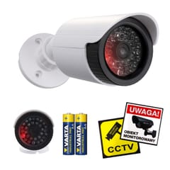 ATRAPA KAMERY TUBOWEJ Z MIGAJĄCĄ DIODĄ LEDAtrapa kamery tubowej IR1800 została zaprojektowana z myślą o uniwersalnym zastosowaniu zarówno wewnątrz pomieszczeń, jak i na zewnątrz budynków. Obudowa wykonana z wytrzymałego tworzywa ABS zapewnia odporność na uszkodzenia mechaniczne oraz długą żywotność produktu. Klasa szczelności IP44 chroni atrapę przed zachlapaniami i czynnikami atmosferycznymi, dzięki czemu może być bezpiecznie montowana na elewacjach, wiatrołapach, garażach czy pod zadaszeniem. Jednocześnie estetyczny i neutralny wygląd sprawia, że atrapa doskonale komponuje się również z wnętrzami budynków.REALISTYCZNY EFEKT DZIAŁANIA DZIĘKI DIODZIE LEDAtrapa IR1800 została wyposażona w migającą czerwoną diodę LED, która imituje pracę aktywnego systemu monitoringu. Światło LED pełni funkcję prewencyjną — przyciąga uwagę i wzmacnia wrażenie, że kamera rzeczywiście rejestruje obraz. Taki efekt znacząco zwiększa skuteczność odstraszania potencjalnych intruzów, wandali oraz osób niepowołanych, bez konieczności instalowania prawdziwego systemu CCTV.