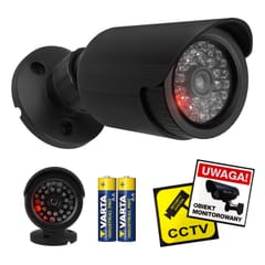ATRAPA KAMERY TUBOWEJ Z MIGAJĄCĄ DIODĄ LEDAtrapa kamery tubowej IR1800 została zaprojektowana z myślą o uniwersalnym zastosowaniu zarówno wewnątrz pomieszczeń, jak i na zewnątrz budynków. Obudowa wykonana z wytrzymałego tworzywa ABS zapewnia odporność na uszkodzenia mechaniczne oraz długą żywotność produktu. Klasa szczelności IP44 chroni atrapę przed zachlapaniami i czynnikami atmosferycznymi, dzięki czemu może być bezpiecznie montowana na elewacjach, wiatrołapach, garażach czy pod zadaszeniem. Jednocześnie estetyczny i neutralny wygląd sprawia, że atrapa doskonale komponuje się również z wnętrzami budynków.REALISTYCZNY EFEKT DZIAŁANIA DZIĘKI DIODZIE LEDAtrapa IR1800 została wyposażona w migającą czerwoną diodę LED, która imituje pracę aktywnego systemu monitoringu. Światło LED pełni funkcję prewencyjną — przyciąga uwagę i wzmacnia wrażenie, że kamera rzeczywiście rejestruje obraz. Taki efekt znacząco zwiększa skuteczność odstraszania potencjalnych intruzów, wandali oraz osób niepowołanych, bez konieczności instalowania prawdziwego systemu CCTV.