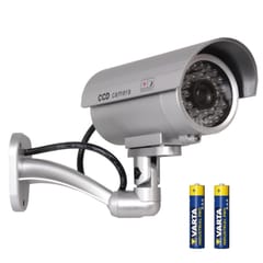 Cechy- Realistyczny wygląd przypominający profesjonalną kamerę przemysłową CCTV- Skutecznie odstrasza potencjalnych włamywaczy i wandali- Widoczna, migająca dioda LED zwiększająca wiarygodność- Obudowa wykonana z wysokiej jakości materiałów- Odporna na deszcz, wiatr i zmienne warunki atmosferyczne- Idealna do stosowania w domach, firmach, magazynach, garażach, ogrodach i na parkingach- Gratis naklejka: UWAGA - obiekt monitorowany- Zasilanie bateryjne - w zestawie baterie Varta Industrial