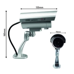 Zainstalowana na wysokości 2m, powoduje że jest nie do odróżnienia od prawdziwej kamery, a migająca dioda LED nadaje 100% autentyczności, sprawiając wrażenie ze obiekt jest monitorowany całodobowo.