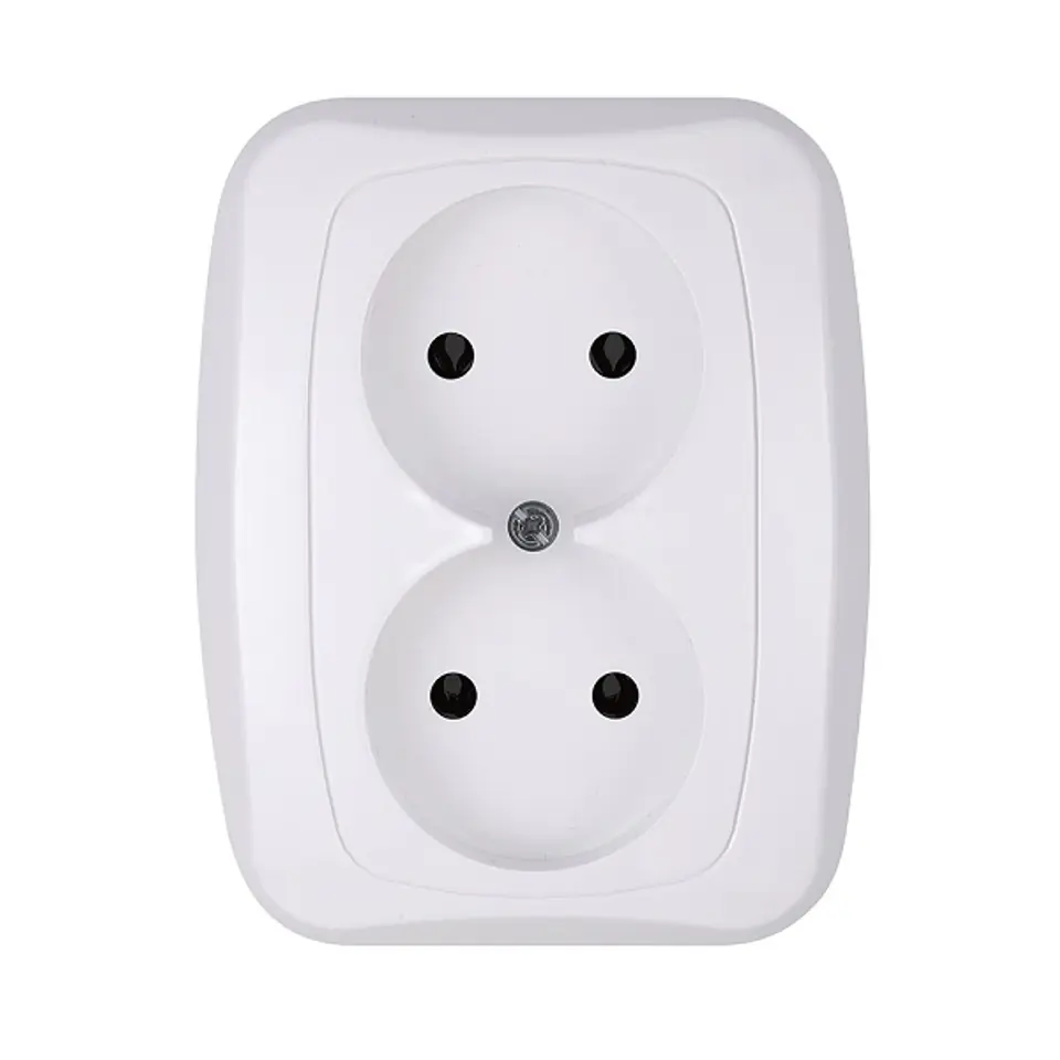 Gniazdo podwójne bez uziemienia, podtynkowe.