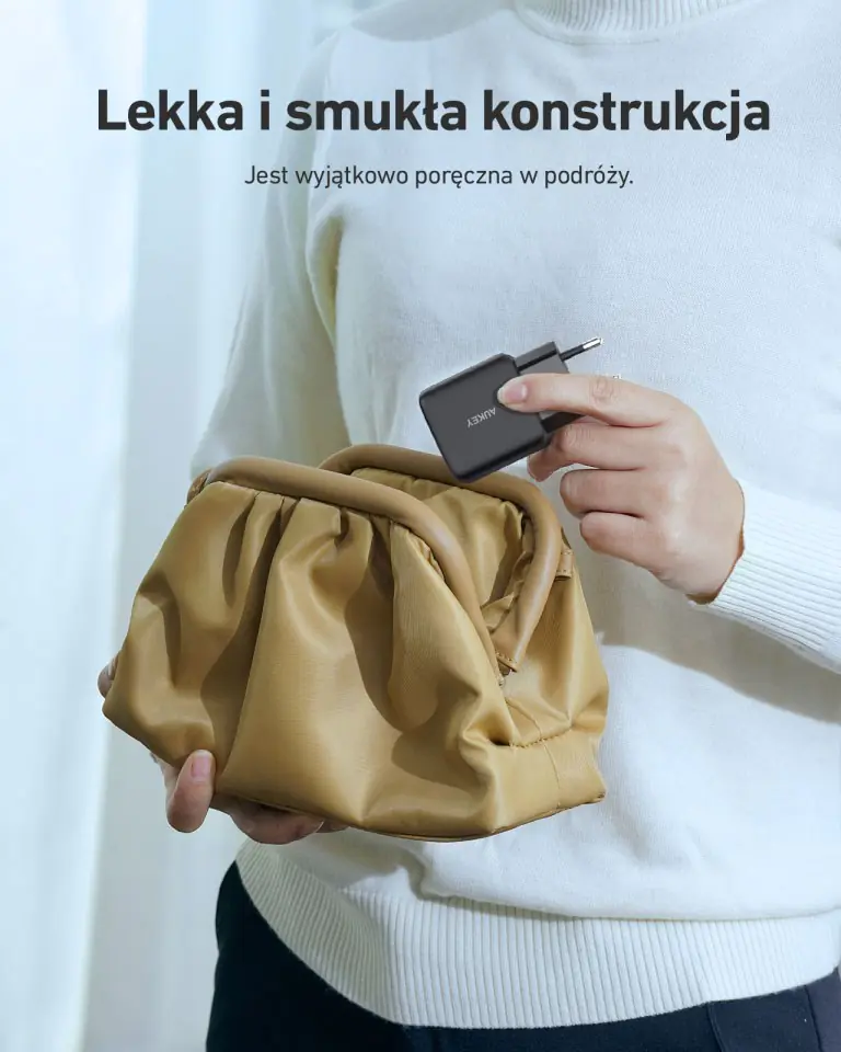 Elegancka, minimalistyczna konstrukcja szybkiej ładowarki Aukey PA-R1 od razu zwraca uwagę. Do jej wyprodukowania użyto solidnych, wysokiej jakości materiałów. Model bez problemu wpasuje się kolorystycznie w każde wnętrze. Nie będziesz miał też problemu, by zawsze zabrać ją ze sobą nie tylko do biura, ale również na przykład na wakacje czy w podróż służbową. Dlaczego? Bo jej wymiary to zaledwie 45 x 44 x 27 mm, a waga tylko 55 gramów!