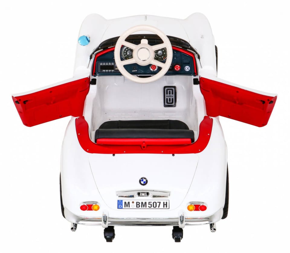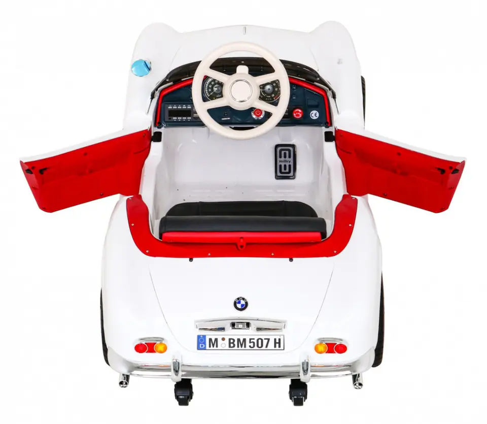 Autko BMW 507 Retro elektryczne dla dzieci Biały + Audio LED + Pilot + Ekoskóra + EVA + Wolny Start