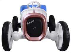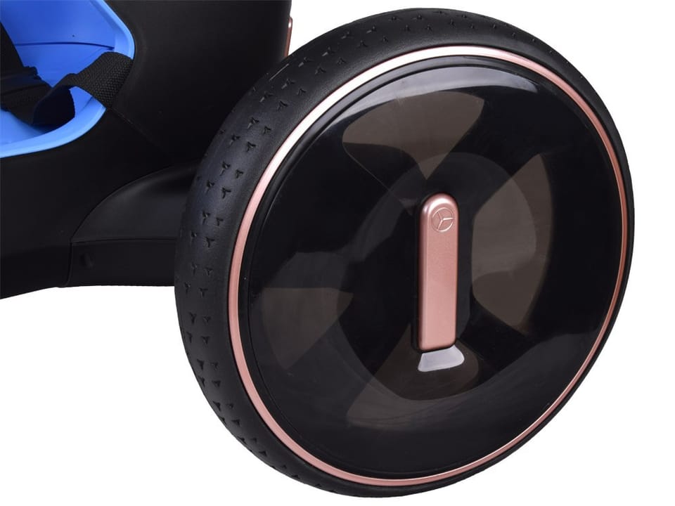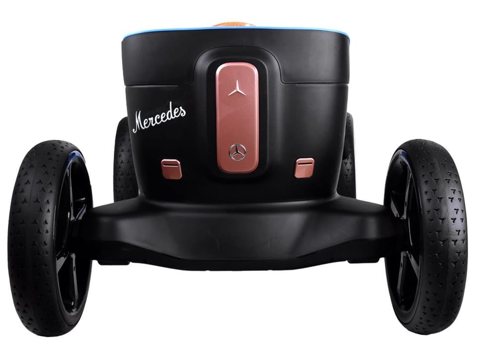 Samochód na akumulator Vision Mercedes Simple jest jak przystało na licencjonowany pojazd starannie dopracowany. Odpalanie pojazdu odbywa się za pomocą przycisku, wówczas mały kierowca słyszy dźwięk ślinka. Obok włącznika on/off znajduje się także włącznik świateł ledowych, które mają funkcje migania w rytm muzyki.Z prawej strony kierownicy znajdują się przełączniki dopowiedziane za kierunek jazdy przód tył, oraz jazda wolna/szybka. Samochód ma wolny start, nie szarpie pojazdem podczas ruszania. Dla małych dzieci jest to bardzo istotne, aby się nie przestraszyły. Pojazdem można sterować za pomocą pilota 2,4Ghz lub dziecko może sterować autkiem samodzielnie, jak już pozna zasady jazdy. Dzięki 2 mocnym silnikom i 2 prędkościom pojazd bez problemu poradzi sobie z nierównościami, jazdą po ogrodzie. Samochód zapewnia komfortowe wsiadanie do autka. Moduł muzyczny z wgranymi wesołymi piosenkami zapewni wesołą jazdę. Dzięki panelowi muzycznemu kierowca może wybrać opcje słuchania muzyki wgranej lub własnych utworów z MP3. Pojazd przeznaczony dla najmłodszych pociech, świetnie się sprawdzi jako prezent urodzinowy lub na inną okazję.Nietuzinkowe, ledowe oświetlenie dające rewelacyjne efekty świetlne, wygodny kubełkowy fotel, elektryczne przyciski do sterowania kierunkiem i szybkością pojazdu, logo Mercedesa zadowoli każdego młodego kierowcę.