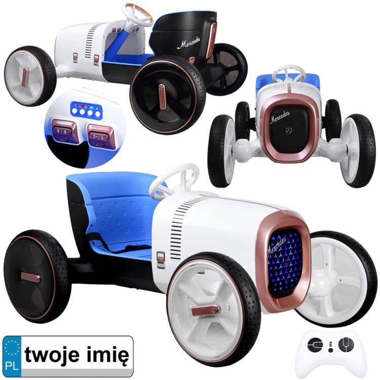 Futurystyczny Mercedes Vision Simplex samochód dla dzieci to propozycja na ten sezon. W realu to unikatowy model stworzony przez Mercedes jest próbą połączenia klasycznej stylistyki z lat dwudziestych z najnowszymi rozwiązaniami technicznymi, co jak widać wyszło nietuzinkowo.Samochód dla dzieci Mercedes Vision Simplex został tak wykonany iż każdy mały kierowca będzie czuł się w nim wyśmienicie i prestiżowo.Najnowsza wersja licencjonowanego Mercedes Vision Simplex posiada 2 mocne silniki 12V 35W + 1 x akumulator żelowy 12V 7Ah + PILOT 2,4Ghz dla rodzica.