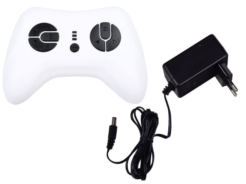 Pilot 2,4GHz funkcją kontroli rodzicielskiej:- włączenie pilota (po włączeniu pilota synchronizuje się z samochodem)- przycisk jazdy przód/tył- skręcanie prawo/lewo- S - 3 stopnie prędkości- STOP - hamulec (blokowanie jazdy samochodem)