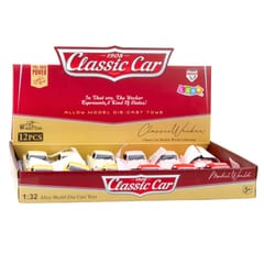 Klasyczne autko w stylu retro to propozycja, która zachwyci zarówno dzieci, jak i kolekcjonerów. Wykonane z metalu z elementami z tworzywa sztucznego, prezentuje się niezwykle elegancko – chromowane detale, charakterystyczna sylwetka z lat 50. i żywe kolory sprawiają, że wygląda jak miniatura prawdziwego samochodu sprzed lat.