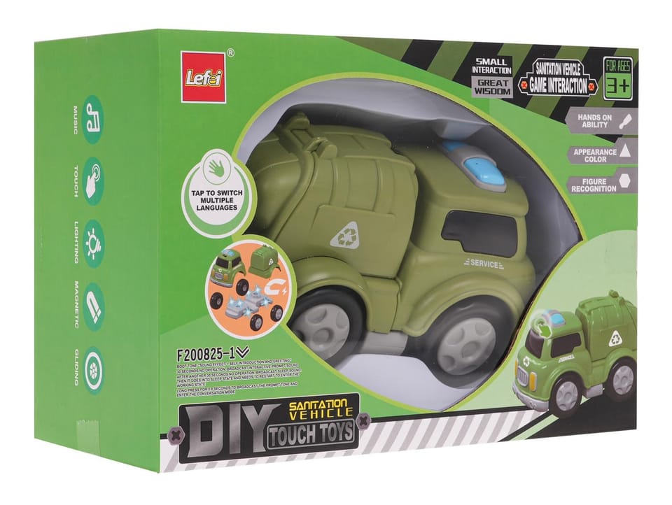 | Interaktywne autko śmieciarka na magnesy dla dzieci powyżej 3-go roku życia. Autko wykonane zostało z najlepszej jakości plastiku i posiada efekty dźwiękowe i świetlne. Po naciśnięciu maski pojazdu usłyszymy odgłosy jazdy pojazdu, wesołe melodie czy też śmiech dziecka. Efektom dźwiękowym towarzyszą mrugające kolorowe światełka. Pojazd rozłożyć możemy na czynniki pierwsze, bez pomocy żadnego narzędzia. Poszczególne elementy posiadają magnesy, dzięki czemu łatwo i trwale łączą się ze sobą. Zabawka zasilana jest bateriami typu 3 x AG13 (w zestawie). Funkcje autka:- odpowiednie dla dzieci powyżej 3-go roku życia,- wykonane z najlepszej jakości plastiku,- efekty dźwiękowe: odgłosy jazdy pojazdu, wesołe melodie, śmiech dziecka,- efekty świetlne: mrugające światełka na dachu pojazdu,- możliwość rozłożenia pojazdu na czynniki pierwsze bez użycia narzędzi,- wbudowane magnesy w poszczególne elementy pojazdu,- otwierana klapa tylna śmieciarki. | |