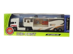 auto ciężarowe, metalowe, z kontenerem mieszkalnym.