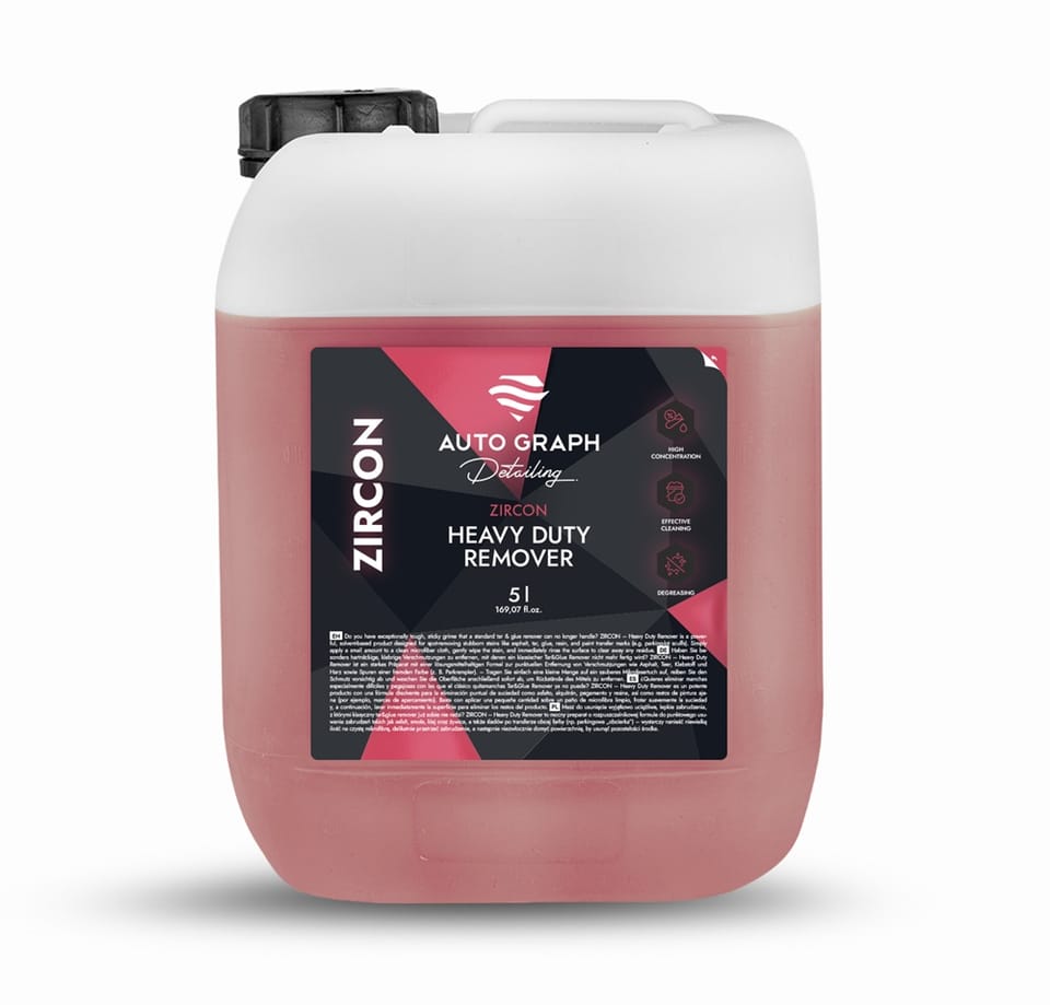 Masz do usunięcia wyjątkowo uciążliwe, lepkie zabrudzenia, z którymi klasyczny tar&glue remover już sobie nie radzi? ZIRCON – Heavy Duty Remover to mocny preparat o rozpuszczalnikowej formule do punktowego usuwania zabrudzeń takich jak asfalt, smoła, klej oraz żywica, a także śladów po transferze obcej farby (np. parkingowa „obcierka”) – wystarczy nanieść niewielką ilość na czystą mikrofibrę, delikatnie przetrzeć zabrudzenie, a następnie niezwłocznie domyć powierzchnię, by usunąć pozostałości środka.
