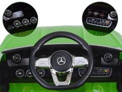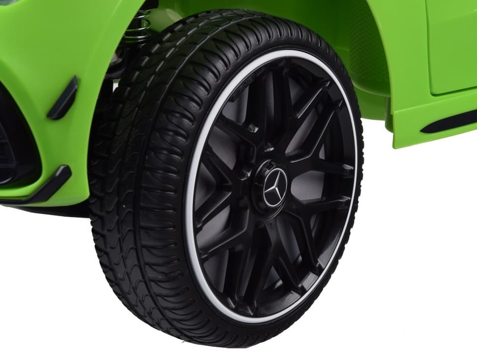 Rewelacyjne autko Mercedes AMG CLA 45s z pewnością zachwyci każdego fana czterech kółek. Licencjonowane autko zostało wykonane z wysokiej jakości materiałów, z dbałością o detale. Szczegółowe wykonanie, jak np. znaczek Mercedesa na bagażniku, masce, fotelu i kierownicy znajdzie uznanie w oczach dziecka jak i kolegów z podwórka. Mercedes posiada 4 silniki 12V 18000RPM oraz akumulator 12V 10Ah. Dzięki napędowi na cztery koła oraz dwóm prędkościom bez problemu poradzi sobie zarówno na chodniku jak i parkowych alejkach. Efekty świetlne i dźwiękowe sprawią, że dziecko będzie mogło poczuć się niczym w prawdziwym samochodzie! Mercedes został wyposażony w otwierane drzwi, ułatwiające wsiadanie i wysiadanie z pojazdu, dzięki czemu dziecko w łatwy sposób może dawkować sobie jazdę. Wewnątrz pojazdu został zamontowany wygodny fotel obity ekoskórą, wyposażony w biodrowy pas, zwiększający bezpieczeństwo jazdy. Dla maksymalnego komfortu użytkownika w Fordzie zastosowano miękkie koła z pianki EVA oraz amortyzatory na tylnych kołach. Autko zostało wyposażone w elektryczny hamulec, który działa po zdjęciu nogi z pedałka gazu. Dodatkowo Mercedes posiada efekt bujania!Na desce rozdzielczej znajdziemy panel multimedialny, na którym znajdują się:- guzik ON/OFF- odpowiedzialny za uruchomienie i wyłączenie auta. Przy uruchomieniu autka usłyszymy odgłos odpalanego silnika,- MODE- odpowiada za zmianę trybu odtwarzania, możemy słuchać wgranych piosenek, historyjek (w języku angielskim), lub połączyć się przez Bluetooth i puścić ulubioną muzykę dziecka,- przyciski z żółwiem i królikiem (D1,D2)- wybór prędkości, wolny/szybki, - guzik odpowiadający za włączenie oświetlenia (przód), - konik- efekt bujania, po włączeniu tego trybu autko zacznie poruszać się w przód i tył,- przyciski sterowania dźwiękiem- zmiana piosenki, przyciszanie/pogłaśnianie oraz pauza. Ponadto, panel multimedialny został wyposażony w wejście Mp3 oraz USB, dzięki czemu ulubione piosenki Malucha są na wyciągnięcie ręki! Nad panelem znajduje się atrapy nawigacji (naklejka) oraz głośników i nawiewów. W kierownicy znajdują się dwa przyciski odpowiedzialne za uruchomienie klaksonu oraz zmianę muzyki. Obok fotela zlokalizowana jest gałka zmiany kierunku jazdy przód/stop/tył, dzięki czemu zabawa w aucie jest jeszcze bardziej realistyczna!Dla wygody rodziców Mercedes został wyposażony w kółka transportowe, wysuwane z podwozia. To sprytne rozwiązanie ułatwi przesunięcie autka, lub przeniesienie go w wybrane miejsce, np. gdy dziecko znudzi się jazdą (o ile to możliwe!). Najważniejsze zalety pojazdu:- otwierane drzwi, - fotel obszyty eko-skórą, - panel muzyczny,- oświetlenie przód, - koła z pianki EVA,- efekt bujania,- pilot kontroli rodzicielskiej.