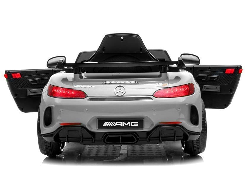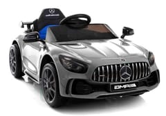 Fantastyczny samochód spod znaku trójramiennej gwiazdy — Mercedes GT R to pojazd, który bez wątpienia zwróci uwagę wszystkich przechodniów. Zachwyci między innymi swą muskularną sylwetką, wysuniętą maską, sportowym spoilerem i pionowym ożebrowaniem grilla. Połyskujący, srebrny Mercedes to samochód, który śmiało można nazwać spełnieniem marzeń każdego kilkulatka.Co prezentowany pojazd ukrywa "pod maską"? Dwa silniki po 45W każdy, akumulator o mocy 12V4,5Ah i automatyczną skrzynię biegów z trzema prędkościami do wyboru. Czy nie brzmi to zachęcająco? Kolejnym atutem srebrnego Mercedesa GT R jest osadzenie go na miękkich kołach EVA, wykonanych ze specjalnego, innowacyjnego tworzywa sztucznego, a także przednie i tylne światła LED oraz umieszczona w środku podświetlana deska rozdzielcza, imitująca specjalne wskaźniki i zegary.Obsługa zminiaturyzowanego pojazdu jest bardzo prosta. Akumulatorowy Mercedes z licencją koncernu Daimler AG według zaleceń producenta przeznaczony jest dla wszystkich dzieci powyżej 3. roku życia, jednak dzięki dołączonemu do zestawu pilota 2.4G do zdalnego sterowania, z powodzeniem mogą korzystać z niego nawet młodsze dzieciaki. Lakierowane, srebrne autko uruchamiane jest specjalnym guzikiem umieszczonym obok kierownicy z klaksonem i dźwiękami, co jest bardzo prostym i intuicyjnym rozwiązaniem. By zatrzymać pojazd, należy tylko ściągnąć nóżkę z pedału gazu, lub w razie nagłej potrzeby użyć pilota dla opiekunów.Elementem, którego nie mogłoby zabraknąć w akumulatorowym pojeździe dla malucha, jest odtwarzacz muzyczny. Radio FM połączone jest z portem USB, a także wejściem na karty pamięci SD, co umożliwia podróżowanie z ulubionymi piosenkami w tle. Tuż nad nim znajduje się przełącznik pozwalający na włączenie i wyłączenie przednich świateł, dzięki któremu dziecko poczuje się jak w prawdziwym pojeździe. Jedynym ograniczeniem przed zabawą z wykorzystaniem srebrnego Mercedesa GT R jest waga — dopuszczalne obciążenie pojazdu akumulatorowego to 30 kg.Sportowy Mercedes GT R skąpany w połyskującym odcieniu srebra został wykonany z największą dbałością, co można zauważyć, przyglądając się wszelkim szczegółom i detalom. Do jego produkcji użyto bezpiecznego dla dzieci, atestowanego materiału, dzięki czemu pojazd został oznakowany certyfikatem CE, świadczącym o spełnieniu wymogów norm Unii Europejskiej. Autko na akumulator zapakowane jest w oryginalny karton, jego montaż jest szybki i prosty — trwa około 30 minut.