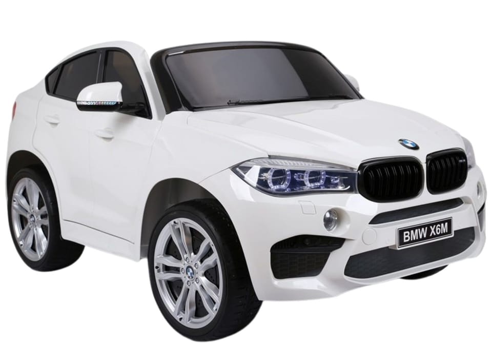 Kto z nas w dzieciństwie nie śnił o tym, by móc samodzielnie prowadzić samochód? Teraz nawet Twoje dziecko może usiąść za sterami fantastycznego, białego BMW X6M! Spełnij jego marzenie, kupując auto na akumulator w przyciągającym wzrok, jasnym kolorze. Rozwiń w dziecku pasję, którą w przyszłości będziecie mogli wspólnie dzielić. Dlaczego warto wybrać model inspirowany pełnowymiarowym BMW? Ze względu na połączenie konstrukcji charakterystycznej dla SUV-ów z ogromną mocą silników, co łączy się w jedną, doskonałą całość.Auto na akumulator BMW X6M do złudzenia przypomina wersję przeznaczoną dla dorosłych. Masywna i mocna konstrukcja w duecie z materiałami najwyższej jakości gwarantuje dziecku doskonałą zabawę na długie lata. Przednia, przyciemniana szyba, a także światła o oryginalnym kształcie dodadzą samochodowi unikalnego charakteru, natomiast wysokie drzwi z wewnętrzną blokadą zwiększą bezpieczeństwo podróżującego autkiem dziecka. Model ten odznacza się wykonaniem z dbałością o najmniejszy detal, wzornictwem charakterystycznym dla marki, a przede wszystkim wysokim komfortem użytkowania i licencją koncernu BMW AG.Wnętrze samochodu na akumulator BMW X6M z pewnością spełni nie tylko oczekiwania dziecka, ale i dorosłych fanów marki. Wszelkie elementy są połączeniem czerni z czerwonymi detalami, co wygląda fenomenalnie. Akcenty te pozwolą poczuć się każdemu maluchowi jak w prawdziwym samochodzie. Wrażenia te spotęguje miękka, podwójna kanapa o szerokości 55 cm, którą wykonano ze skóry ekologicznej, a także kierownica z przyciskami czy wyglądający jak prawdziwy drążek służący do zmiany biegów. Pedał gazu oddalony jest od siedziska o około 27 cm, co jest gwarancją komfortowej zabawy.To nie wszystko, co ukrywa prezentowany model BMW X6M. W wyposażeniu auta znajduje się radio z portem USB i wejściem na MP3, co pozwoli na słuchanie ulubionych melodii małego kierowcy. Można odtwarzać piosenki znajdujące się w systemie lub wgrać swoją składankę zarówno na pendrive, jak i odtwarzacz muzyczny, dzięki czemu maluch będzie mógł podróżować w towarzystwie swych ulubionych melodii. Radio posiada funkcję zmiany piosenek oraz regulacji poziomu głośności. Dodatkowym atutem samochodu, który z pewnością spodoba się każdemu dziecku, jest podświetlana na niebiesko deska rozdzielcza. Dodatek ten sprawi, że każdy maluch z łatwością wczuje się w rolę kierowcy.Akumulatorowe BMW przeznaczone dla malucha uruchamiane jest poprzez przesunięcie włącznika ON/OFF. Towarzyszą temu dźwięki przypominające pracę silnika, a także oświetlenie LED — przednie i tylne. Przed wyruszeniem w drogę można zdecydować, w jakim tempie ma poruszać się auto — służy do tego znajdujący się obok włącznika guzik high speed/low speed. Autko może osiągnąć prędkość od 5 do 7 km/h, co zawdzięcza dwóm silnikom — po 120W każdy, oraz akumulatorowi 12V 10Ah.Według zaleceń producenta, model ten przeznaczony jest dla dzieci, które osiągnęły 3. rok życia, jednak pod czujnym okiem rodziców z łatwością mogą skorzystać z niego nawet młodsi. Do zestawu dołączono specjalny pilot, dzięki któremu to opiekunowie mogą sterować autem — przód/tył, prawo/lewo, a nawet stosując awaryjne zatrzymanie w razie potrzeby. Maksymalne obciążenie pojazdu to 50 kilogramów, dzięki czemu może z niego korzystać jednocześnie dwójka dzieci.