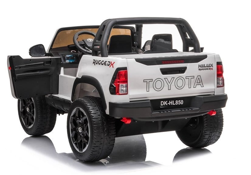 Samochód na akumulator Toyota Hilux charakteryzuje się opcją biegu wolnego i szybkiego, dzięki czemu ma możliwość osiągnięcia prędkości od 3 do 5km/h, hamując automatycznie po zwolnieniu pedału gazu przez młodego kierowcę. Model Toyoty przeznaczony jest dla dzieci, które osiągnęły 3. rok życia, jednak pod czujnym okiem opiekunów z powodzeniem mogą korzystać z niego dzieci w młodszym wieku. Dużą pomoc przyniesie pilot 4.2G, wyposażony w przyciski umożliwiające sterowanie pojazdu przez dorosłego. Toyota posiada certyfikat CE, co jest zapewnieniem bezpiecznej zabawy.