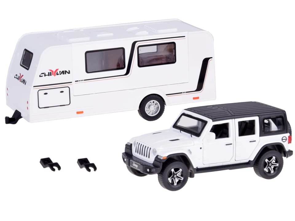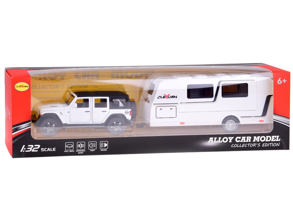 Auto terenowe + przyczepa kempingowa to idealna zabawka, która przeniesie Twoje dziecko w świat wakacyjnych przygód! Metalowy, terenowy samochód został wykonany z niezwykłą dbałością o detale, a świecące reflektory podczas jazdy dodają mu realistycznego wyglądu. Model w skali 1:32 doskonale odwzorowuje popularnego SUV-a, łącząc w sobie trwałość oraz wysoką jakość wykonania z tworzywa sztucznego.