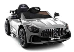 Fantastyczny samochód spod znaku trójramiennej gwiazdy — Mercedes GT R to pojazd, który bez wątpienia zwróci uwagę wszystkich przechodniów. Zachwyci między innymi swą muskularną sylwetką, wysuniętą maską, sportowym spoilerem i pionowym ożebrowaniem grilla. Połyskujący, srebrny Mercedes to samochód, który śmiało można nazwać spełnieniem marzeń każdego kilkulatka.Co prezentowany pojazd ukrywa "pod maską"? Dwa silniki po 45W każdy, akumulator o mocy 12V4,5Ah i automatyczną skrzynię biegów z trzema prędkościami do wyboru. Czy nie brzmi to zachęcająco? Kolejnym atutem srebrnego Mercedesa GT R jest osadzenie go na miękkich kołach EVA, wykonanych ze specjalnego, innowacyjnego tworzywa sztucznego, a także przednie i tylne światła LED oraz umieszczona w środku podświetlana deska rozdzielcza, imitująca specjalne wskaźniki i zegary.Obsługa zminiaturyzowanego pojazdu jest bardzo prosta. Akumulatorowy Mercedes z licencją koncernu Daimler AG według zaleceń producenta przeznaczony jest dla wszystkich dzieci powyżej 3. roku życia, jednak dzięki dołączonemu do zestawu pilota 2.4G do zdalnego sterowania, z powodzeniem mogą korzystać z niego nawet młodsze dzieciaki. Lakierowane, srebrne autko uruchamiane jest specjalnym guzikiem umieszczonym obok kierownicy z klaksonem i dźwiękami, co jest bardzo prostym i intuicyjnym rozwiązaniem. By zatrzymać pojazd, należy tylko ściągnąć nóżkę z pedału gazu, lub w razie nagłej potrzeby użyć pilota dla opiekunów.Elementem, którego nie mogłoby zabraknąć w akumulatorowym pojeździe dla malucha, jest odtwarzacz muzyczny. Radio FM połączone jest z portem USB, a także wejściem na karty pamięci SD, co umożliwia podróżowanie z ulubionymi piosenkami w tle. Tuż nad nim znajduje się przełącznik pozwalający na włączenie i wyłączenie przednich świateł, dzięki któremu dziecko poczuje się jak w prawdziwym pojeździe. Jedynym ograniczeniem przed zabawą z wykorzystaniem srebrnego Mercedesa GT R jest waga — dopuszczalne obciążenie pojazdu akumulatorowego to 30 kg.Sportowy Mercedes GT R skąpany w połyskującym odcieniu srebra został wykonany z największą dbałością, co można zauważyć, przyglądając się wszelkim szczegółom i detalom. Do jego produkcji użyto bezpiecznego dla dzieci, atestowanego materiału, dzięki czemu pojazd został oznakowany certyfikatem CE, świadczącym o spełnieniu wymogów norm Unii Europejskiej. Autko na akumulator zapakowane jest w oryginalny karton, jego montaż jest szybki i prosty — trwa około 30 minut.
