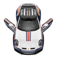 Samochód wyróżnia się dopracowanymi detalami, realistycznym malowaniem oraz solidnym wykonaniem, dzięki czemu świetnie prezentuje się zarówno podczas zabawy, jak i jako model kolekcjonerski. Otwierane drzwi oraz zdejmowany bagażnik dachowy zwiększają realizm i pozwalają na jeszcze bardziej angażującą zabawę.