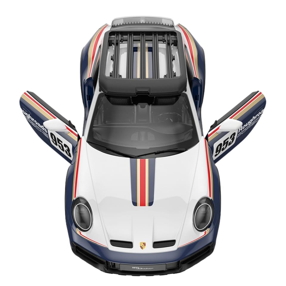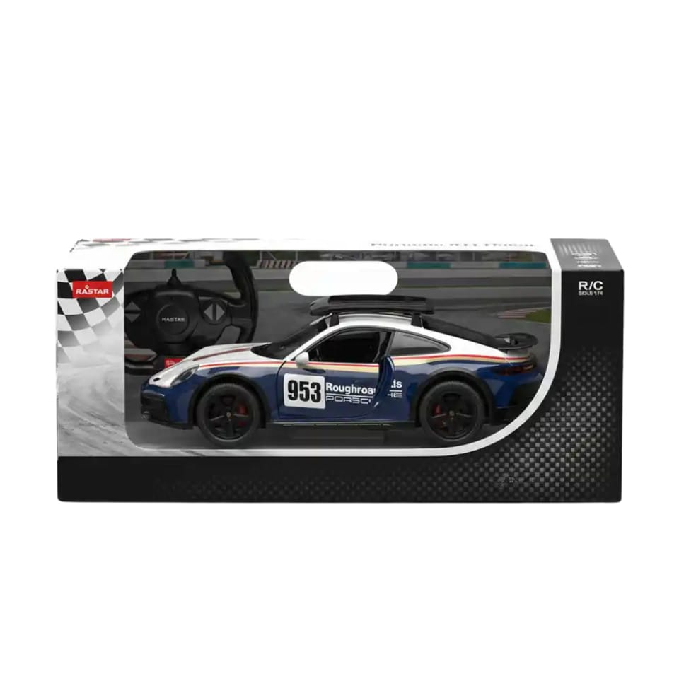 Model RASTAR Porsche 911 Dakar w skali 1:14 to wyjątkowa propozycja dla miłośników motoryzacji, dynamicznej zabawy oraz zdalnie sterowanych pojazdów. Jest to licencjonowana replika kultowego modelu Porsche, która łączy sportowy charakter z terenowym stylem, nawiązując do legendarnego Porsche 953.