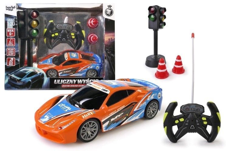 Emocjonująca jazda w domowym wydaniuAuto Uliczny Wyścig to dynamiczna zabawka zdalnie sterowana, która przeniesie prawdziwe wyścigowe emocje do Twojego domu! W zestawie znajduje się auto, pilot, sygnalizator świetlny oraz dwa pachołki, które pozwolą na stworzenie własnego toru.