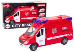 Auto Strażackie Wóz Światła Dźwięki Otwierane Drzwi Napęd Czerwony