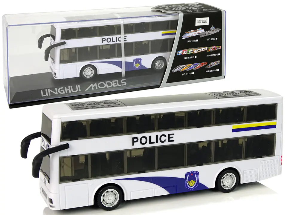 Autobus Policyjny Dwupiętrowy Biały z Naciągiem Dźwięk