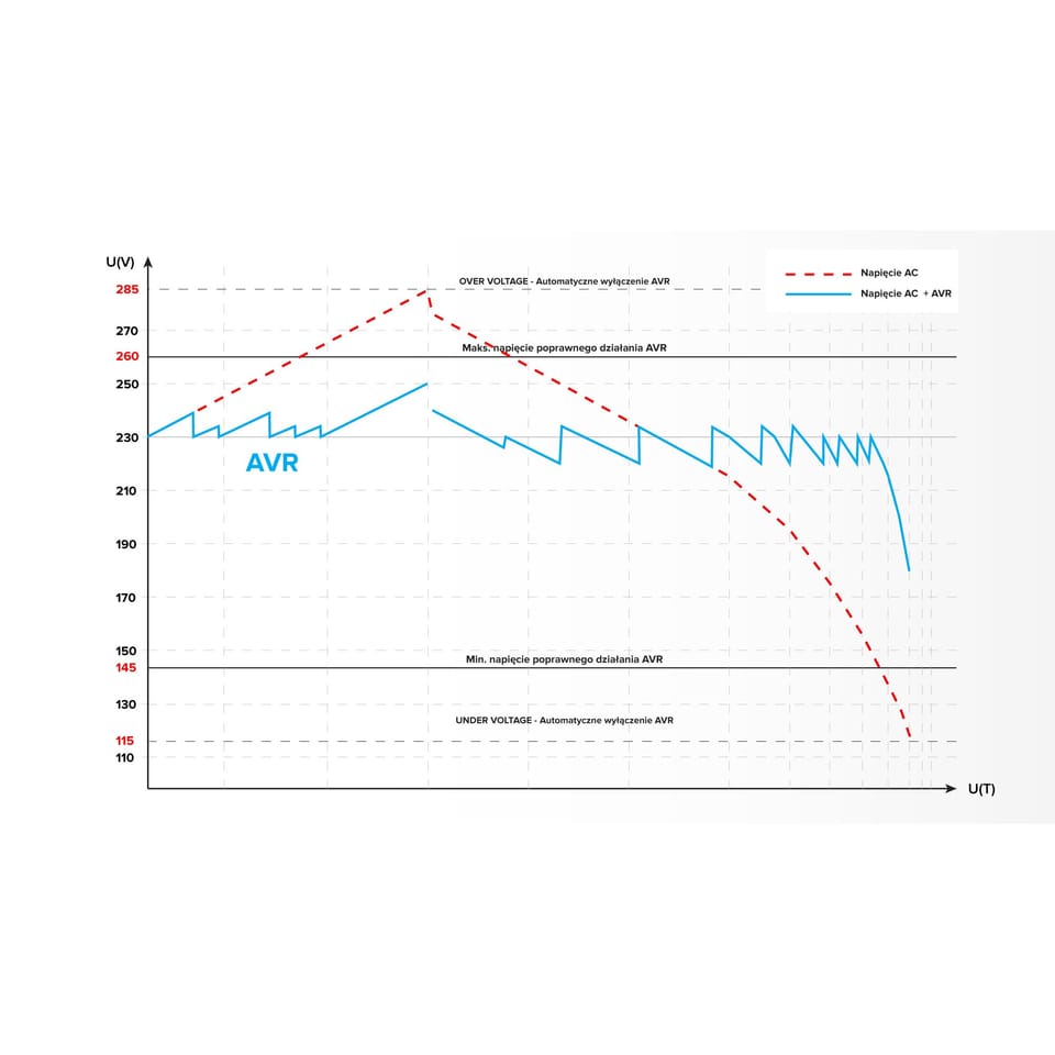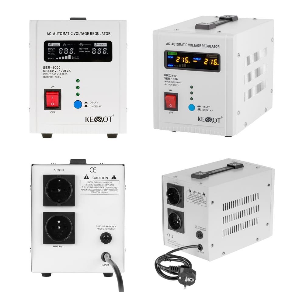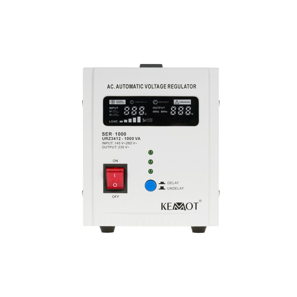 Utrata danych, nagłe wyłączenie, uszkodzenie sprzętu lub jego niepoprawne działanie to tylko niektóre ze skutków niestabilnego napięcia. Niezależnie od obciążenia sieci i wahań napięcia wyjściowego, stabilizator Kemot SER-1000 utrzymuje je na poziomie 230 V ±5%, pozwalając na wydajną pracę wszystkich urządzeń, w tym tych wrażliwych na jakość napięcia sieci. Regulacja odbywa się automatycznie, co zapewnia wysoką dokładność napięcia wyjściowego. SER-1000 znajdzie zastosowanie w warunkach domowych, jak i biurowych, idealnie sprawdzając się do sprzętu audio/video, czy komputerów.