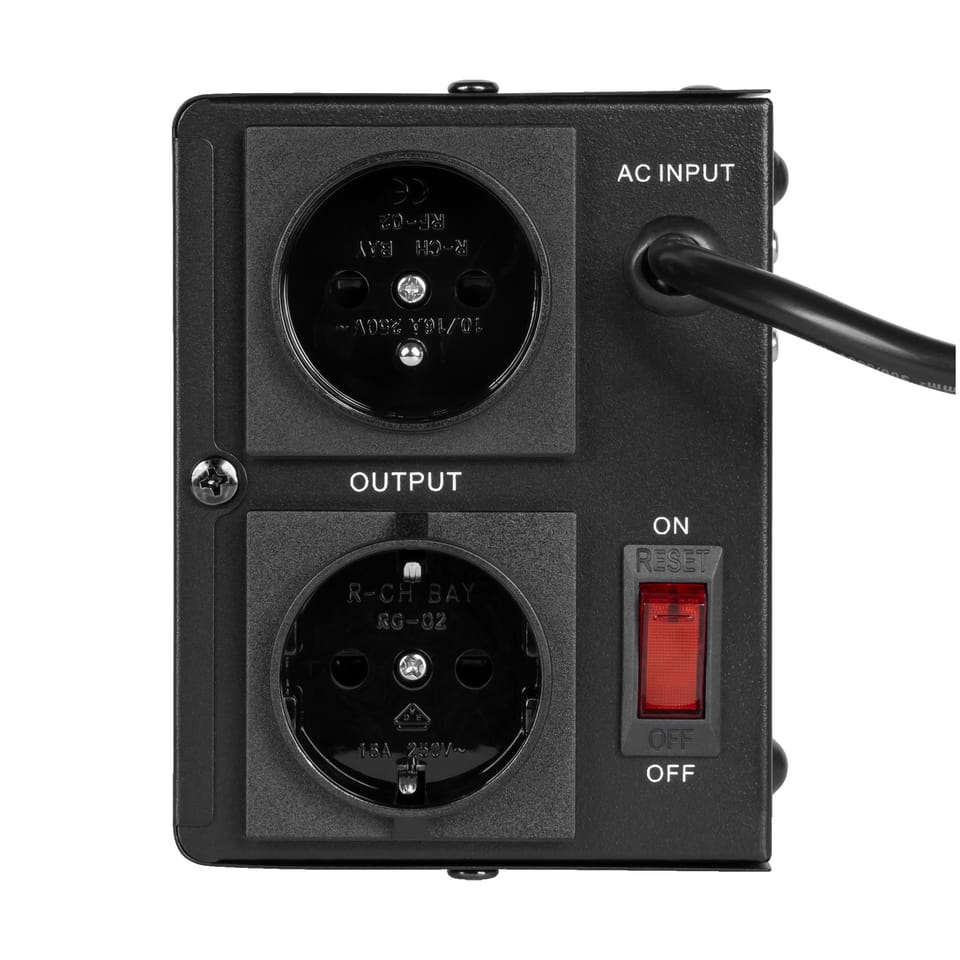 Wejście: Zakres napięcia 150 - 270 V ACWejście: Częstotliwość 50/60 HzWyjście: Napięcie 230 VWyjście: Częstotliwość 50/60 HzWyjście: Precyzja ±8%Napięcie wyjściowe: Jedna fazaTransformator toroidalny C.R.G.O.Sprawność: 98%Zabezpieczenia: przed zbyt wysokim i niskim napięciem, przeciążeniem, przegrzaniem, zwarciemOpóźnienie: Brak opóźnienia / opóźnienie (180/6 sekund)Temperatura pracy: 0~40°CWilgotność względna: 10%~90%Temperatura przechowywania: -15~45°C----------Waga: 2,82 kgWymiary: 117 x 197 x 90 mm