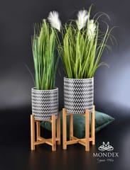 Doniczka ceramiczna na drewnianym stojaku z serii AVA marki MONDEX. Świetne uzupełnienie każdego wnętrza. Trend na rośliny we wnętrzach dosłownie rozkwita, nasza linia doniczek świetnie go uzupełni. wymiary samej doniczki: średnica: 20 cm wysokość: 23 cm wymiary razem ze stojakiem: długość: 20 cm szerokość: 20 cm wysokość: 47 cm