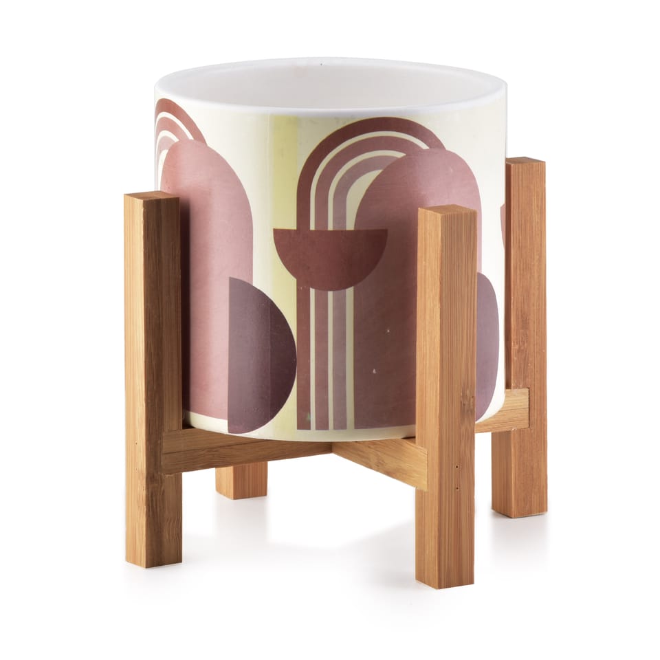 Ceramiczna osłonka z serii AVA na drewnianym stojaku marki MONDEX. Idealnie sprawdzi się do eksponowania kwiatów w każdym pomieszczeniu. wymiary samej doniczki: średnica: 12,5 cm wysokość: 11,7 cm wymiary razem ze stojakiem: długość: 16,2cm szerokość: 16,2 cm wysokość: 16,5 cm wymiary stojak: szerokość:12.5cm wysokość :13cm white box